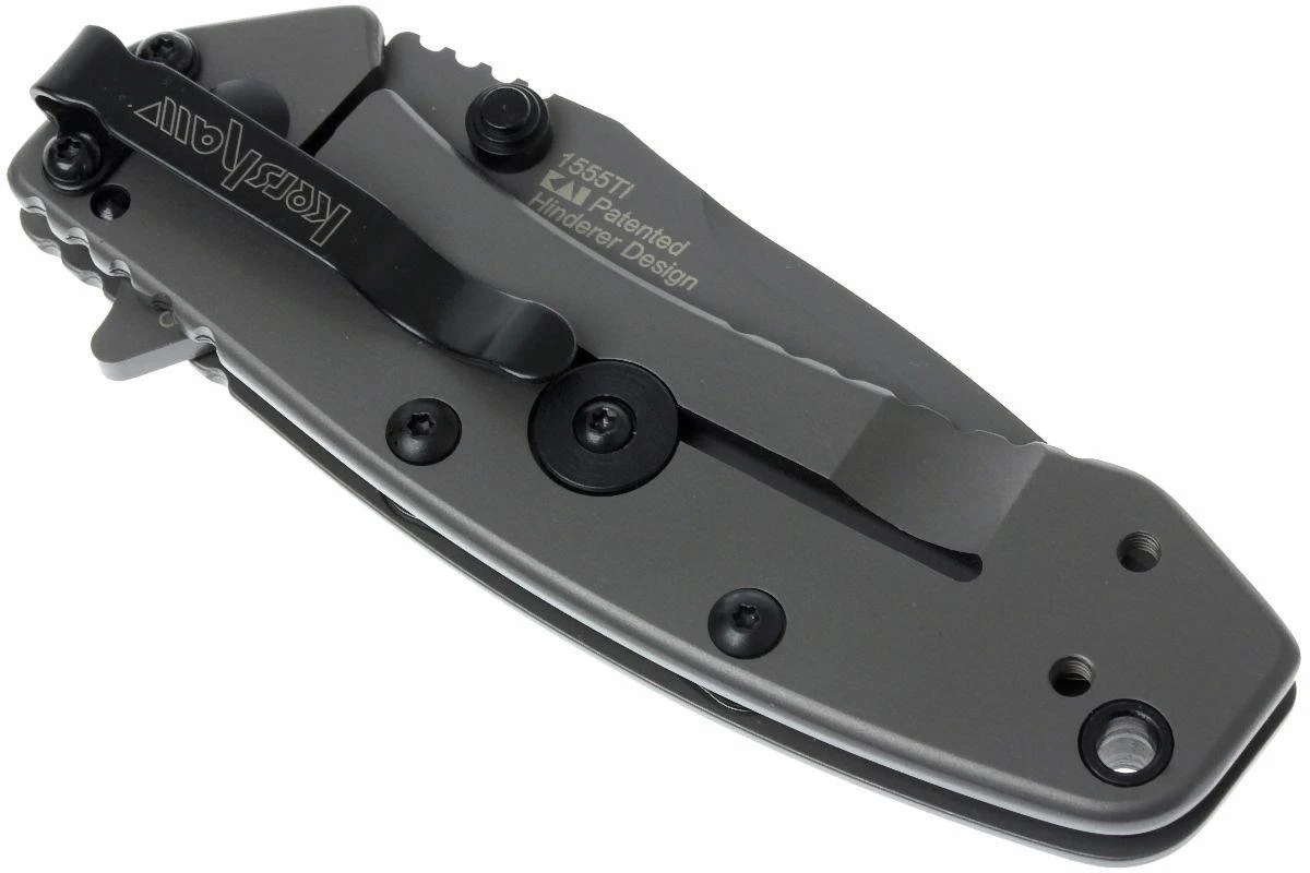 Le coutelier Rick Hinderer a conçu le Cryo TI. Et il a fait du bon travail. Un couteau très solide pour un prix compétitif. Il est fait d’acier inoxydable avec un revêtement en nitrure de titane gris mat. L’ouverture assistée permet à la lame de s’ouvrir rapidement et en douceur. Le repose-pouce comme le flipper peuvent être utilisés pour ouvrir le couteau d’une seule main par les gauchers comme par les droitiers. Le verrouillage frame lock lourd bloque la lame en position ouverte. Il n’est pas possible de pousser le frame lock trop loin vers l’extérieur. Une lamelle limite le mouvement. En bref, un système bien pensé et sûr.